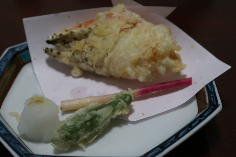 天ぷら。ツメの部分を揚げてあり、蟹肉部分もしっかり入っていて食べ応えのある一品でした。